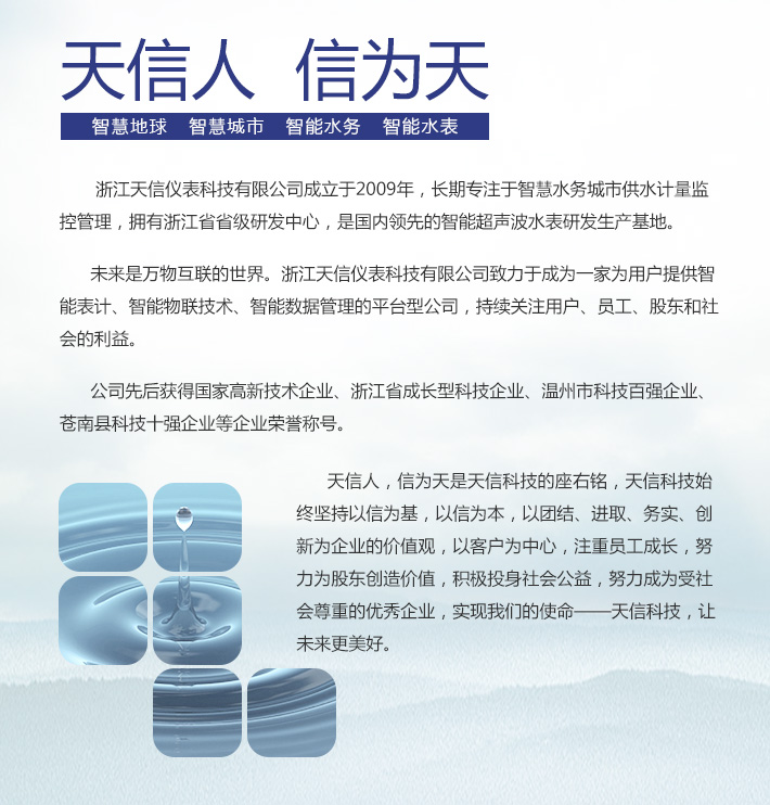 浙江天信儀表科技有限公司是天信儀表集團(tuán)下屬子公司,主要從事水表、流量計(jì)、壓力儀表和GPRS...