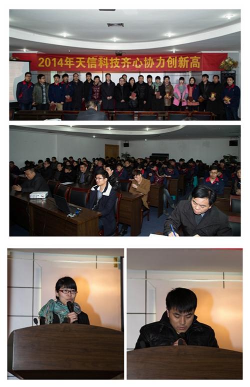 憶往昔,看今朝。公司經(jīng)過這幾年的快速發(fā)展,無論是在銷售業(yè)績上、品牌知名度上都迎來了質(zhì)的飛躍,專業(yè)化的精英團隊、科學規(guī)范的管理制度正在逐步成型,公司所發(fā)生的令人欣喜的改變,正是全體同仁努力耕耘與付出的結(jié)果。大會首先由公司總經(jīng)理助理葉波同志、范健挺同志發(fā)表了新年致詞。他們回顧了2013年公司在生產(chǎn)管路、產(chǎn)量提升、品質(zhì)改進等方面取得的成績,指出了管理層人員的優(yōu)點與不足,對全體員工2013年的辛勤勞作表示了衷心的感謝,接下來有我們總經(jīng)理陳為剛同志發(fā)表演講,宣讀了2014年天信科技公司的人員任命;調(diào)整出新的組織架構(gòu)和人員配置;他回顧了公司近年來的快速發(fā)展,充分肯定了過去一年大家為公司發(fā)展所做出的努力,并衷心感謝了這些為公司發(fā)展付出努力的家人;指出了公司2014年的發(fā)展目標和方向,希望新的一年天信科技全體員工能再次共同攜手,再接再勵,共同書寫天信科技全新的燦爛與輝煌。大會現(xiàn)場為在公司過去一年中表現(xiàn)出色的同仁頒發(fā)了優(yōu)秀員工獎項、積極分子榮譽,頒獎嘉賓陳總、葉總、范總分別對2013年優(yōu)秀員工、積極分子頒發(fā)了表彰獎勵。年度優(yōu)秀員工及積極分子張少蘆、游修筆二位代表所有獲得榮譽的員工者發(fā)表了獲獎感言。在場同志們?yōu)檫@些手捧豐厚獎金的獲獎?wù)攉I上了最真誠的祝賀和最熱情的掌聲,他們滿懷激情、熱情洋溢,對公司的明天寄予了希望。