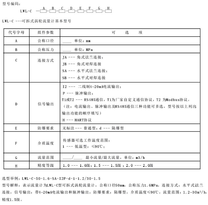 LWL-C可拆式渦輪流量計(jì)